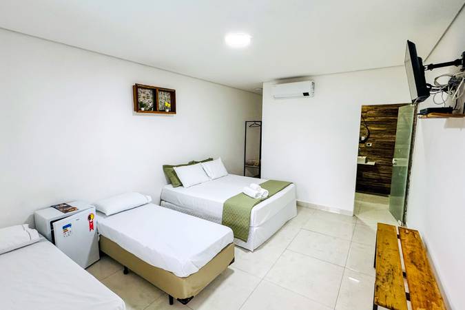 As três suítes da categoria Superior Quádruplo acomodam até 04 pessoas em uma cama casal + duas camas solteiro, e são completas para sua comodidade.